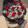 10 RED ROSES PAIRED WITH BRIGHT SPRAY CARNATION AND REFRESHING EUCAYPTUS.